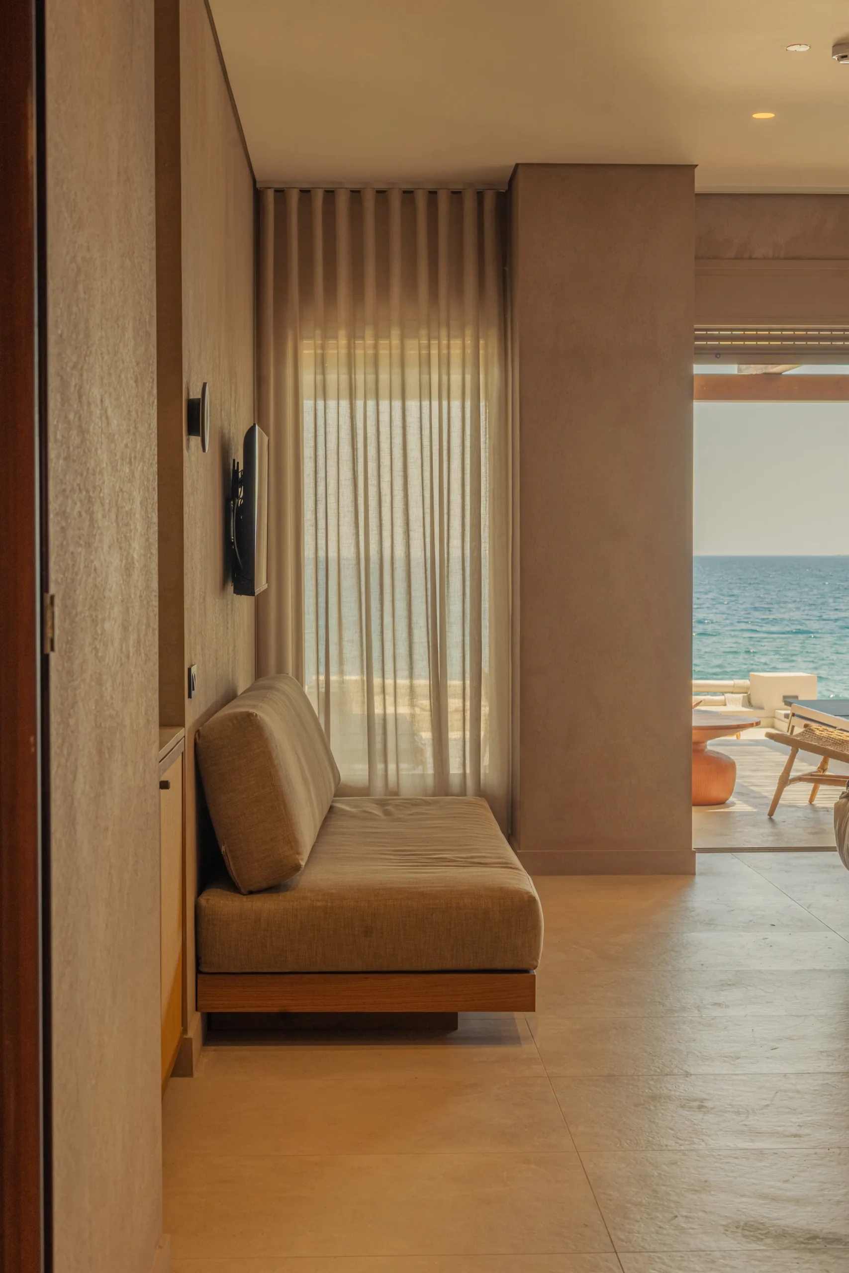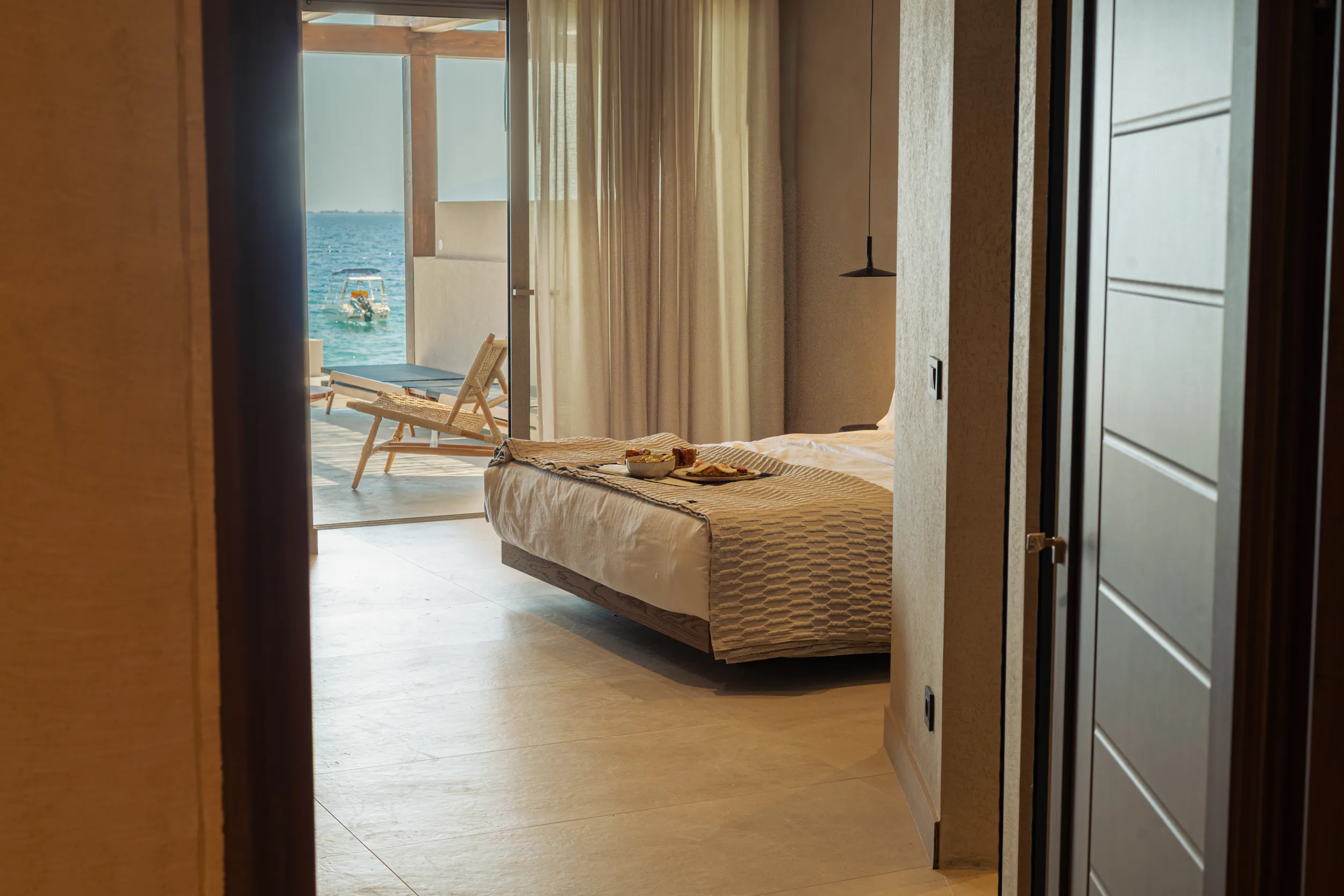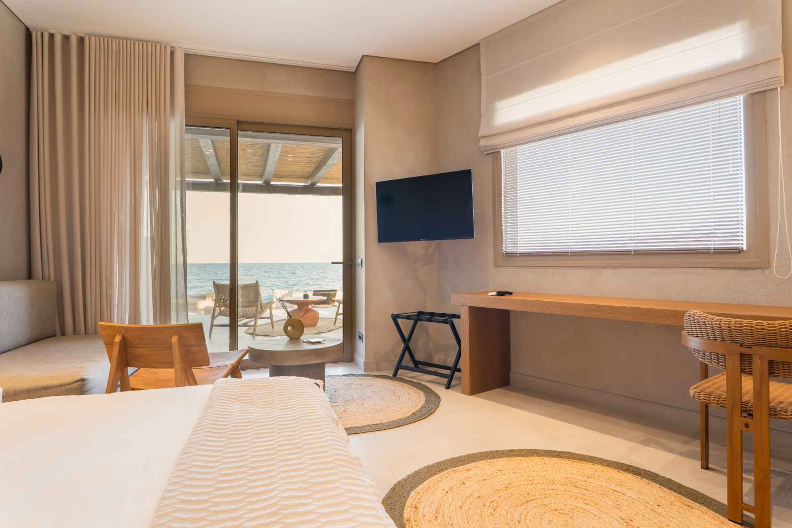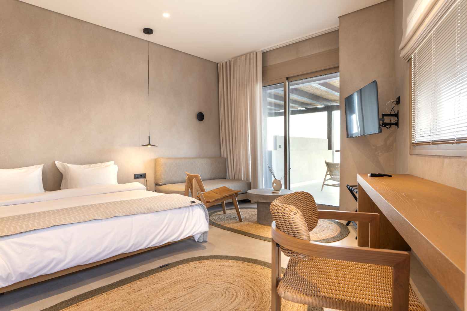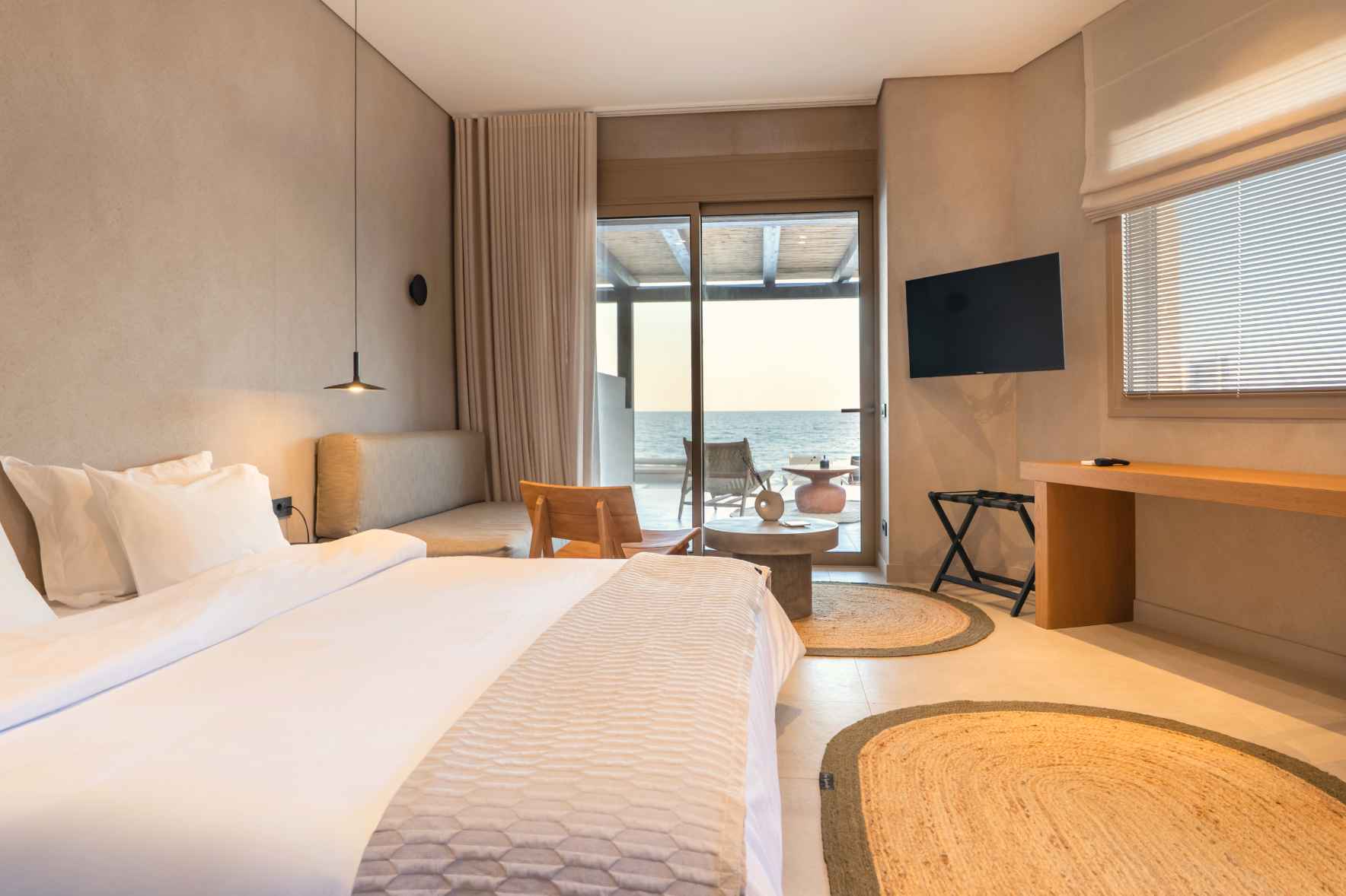 Κάθε σουίτα φιλοξενεί άνετα έως 2 επισκέπτες και διαθέτει διπλό κρεβάτι, πλήρως εξοπλισμένο μπάνιο με ντους, άνετο χώρο καθιστικού και ιδιωτικό μπαλκόνι ή αυλή με όμορφη θέα είτε στη θάλασσα είτε στον καταπράσινο κήπο.