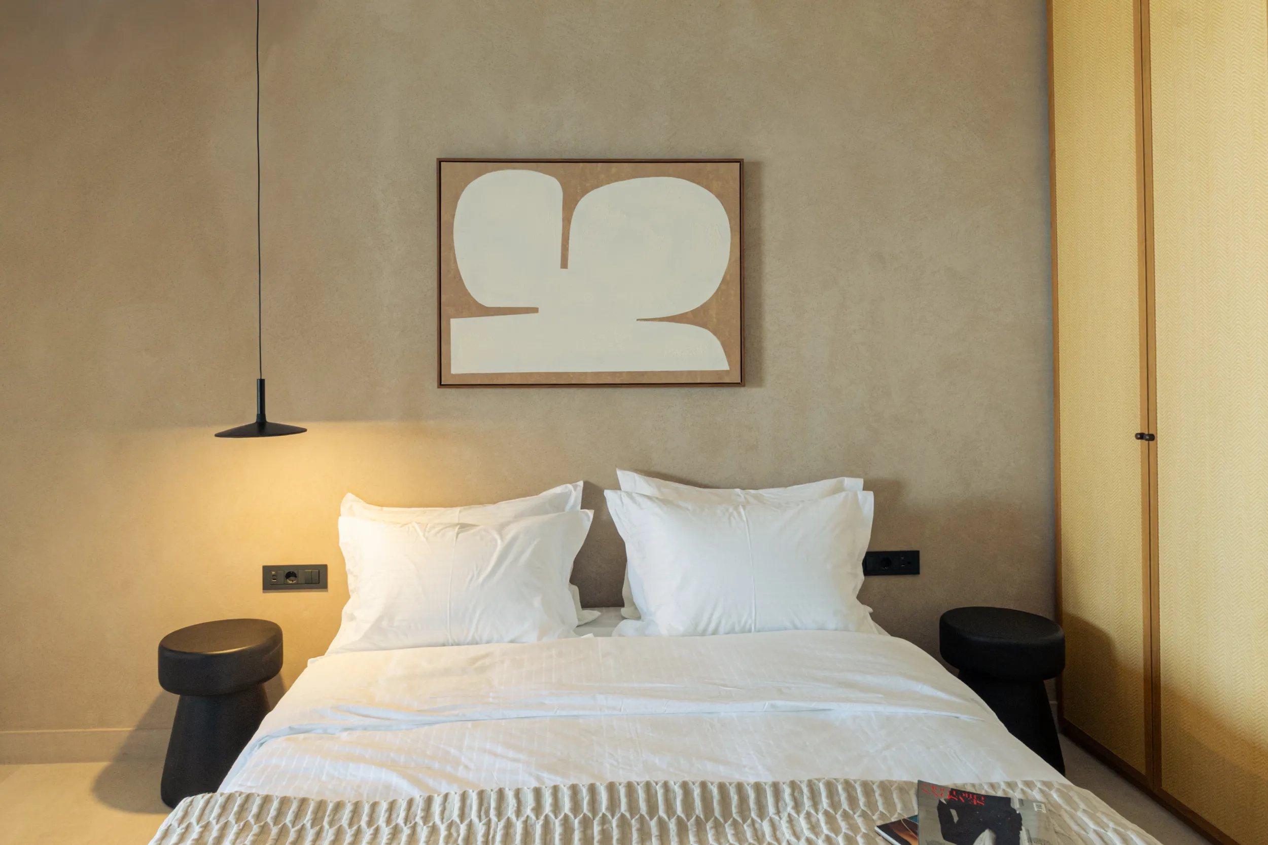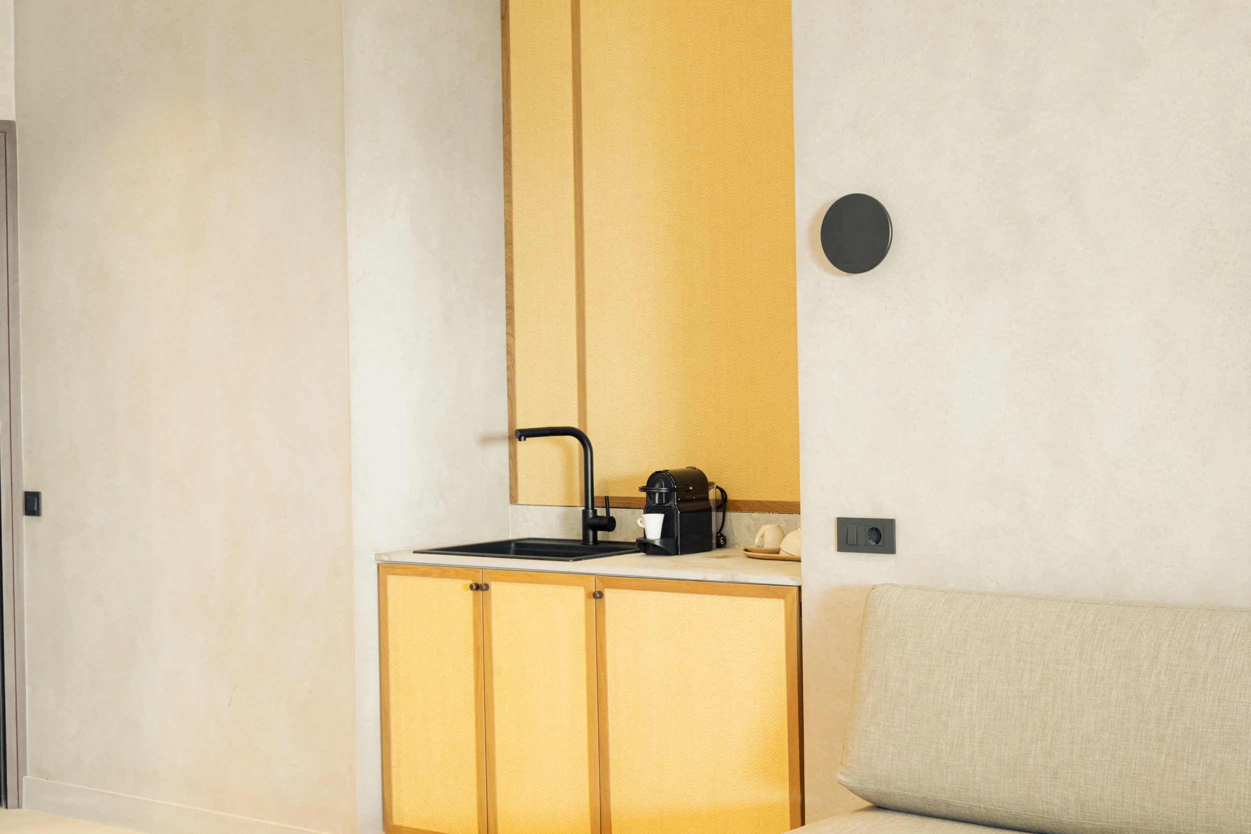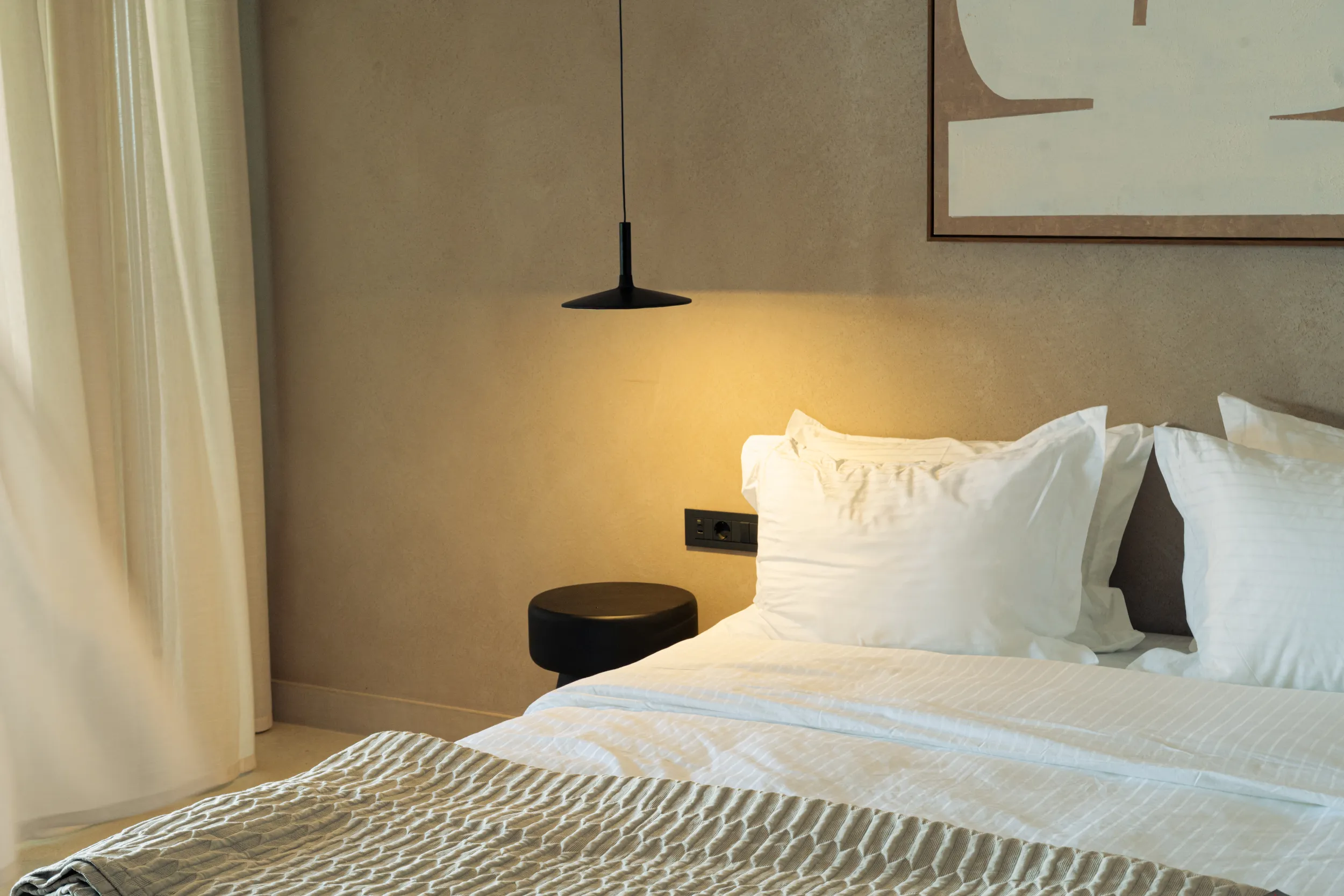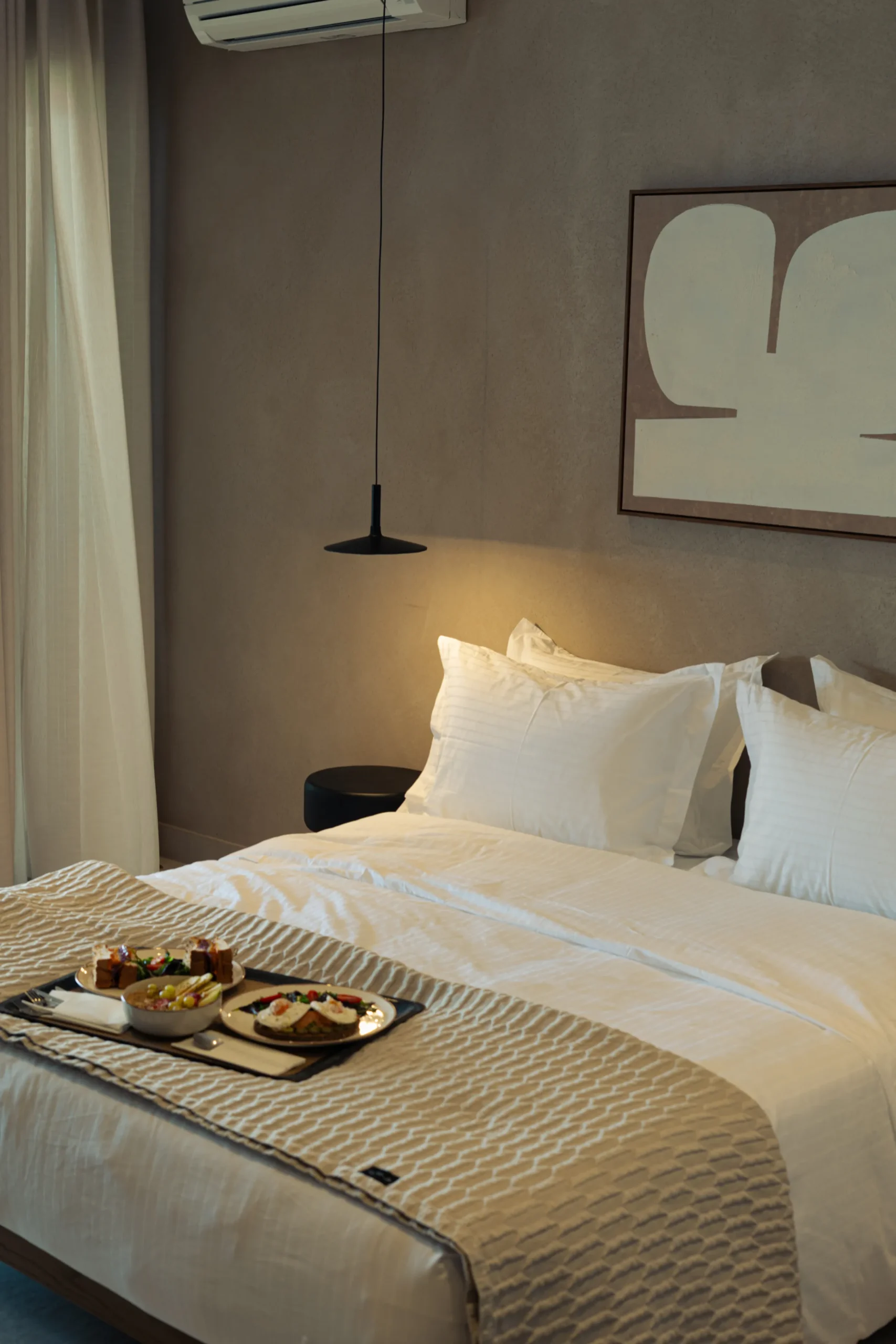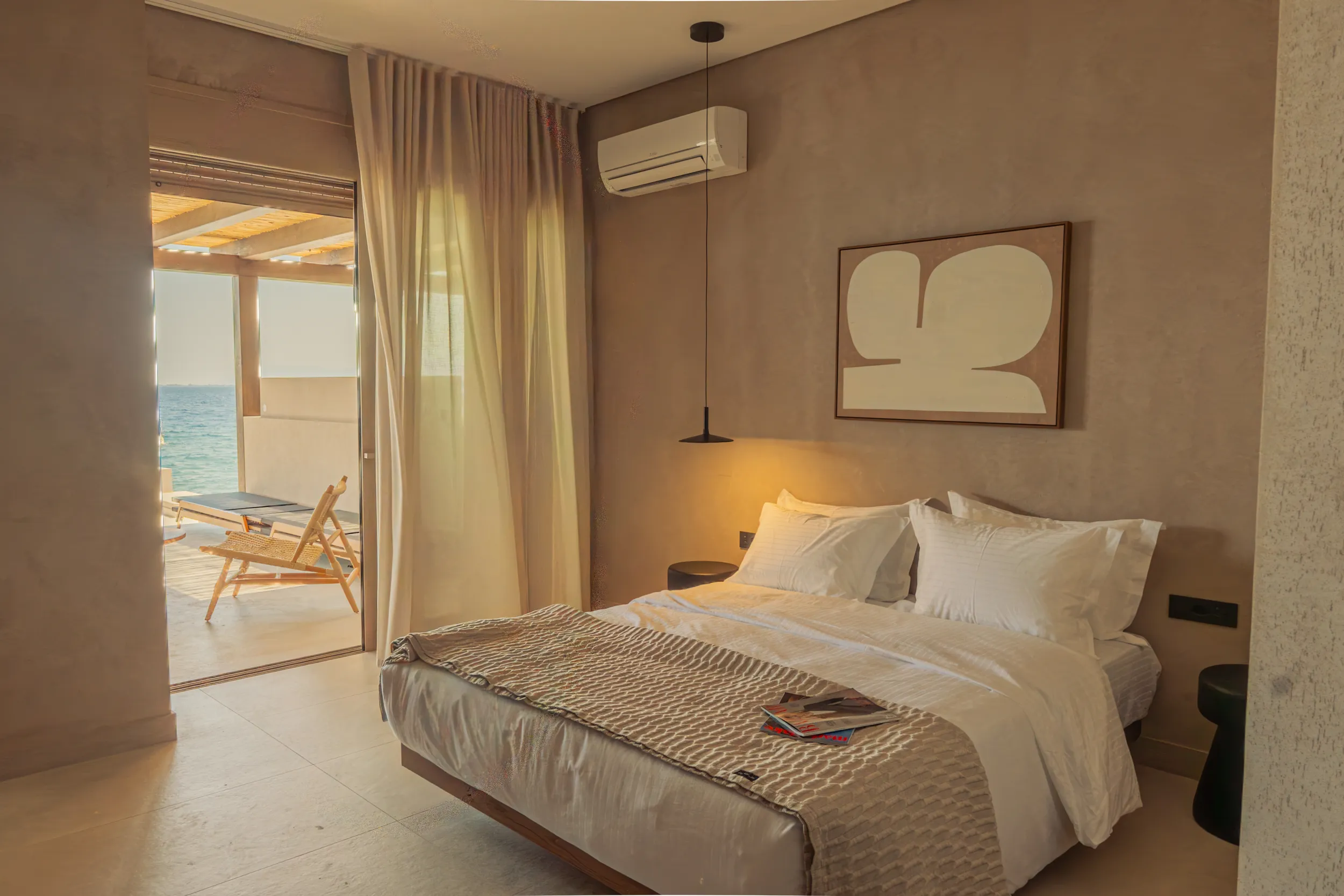 Κάθε σουίτα φιλοξενεί άνετα έως 2 επισκέπτες και διαθέτει διπλό κρεβάτι, πλήρως εξοπλισμένο μπάνιο με ντους, άνετο χώρο καθιστικού και ιδιωτικό μπαλκόνι ή αυλή με όμορφη θέα είτε στη θάλασσα είτε στον καταπράσινο κήπο.