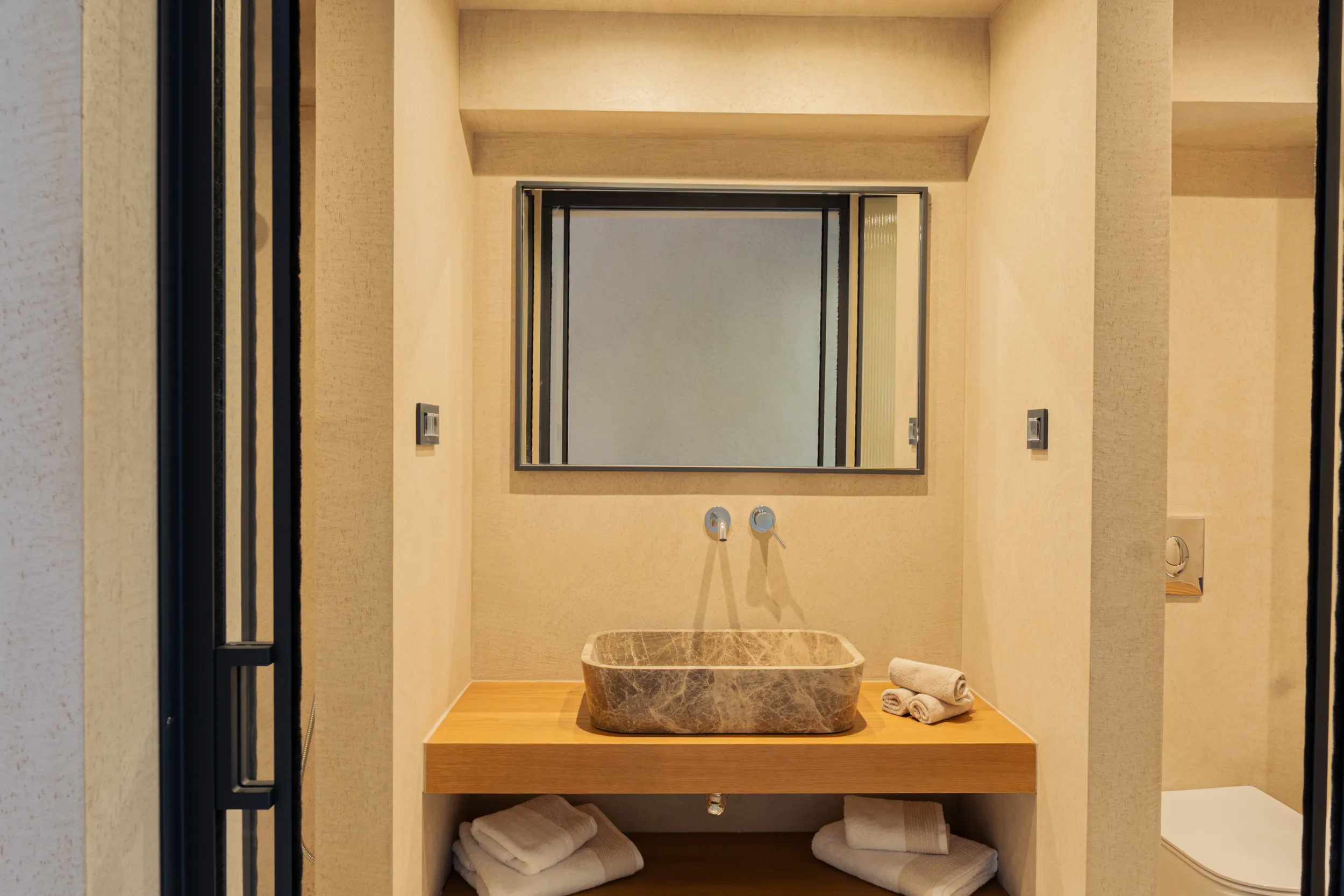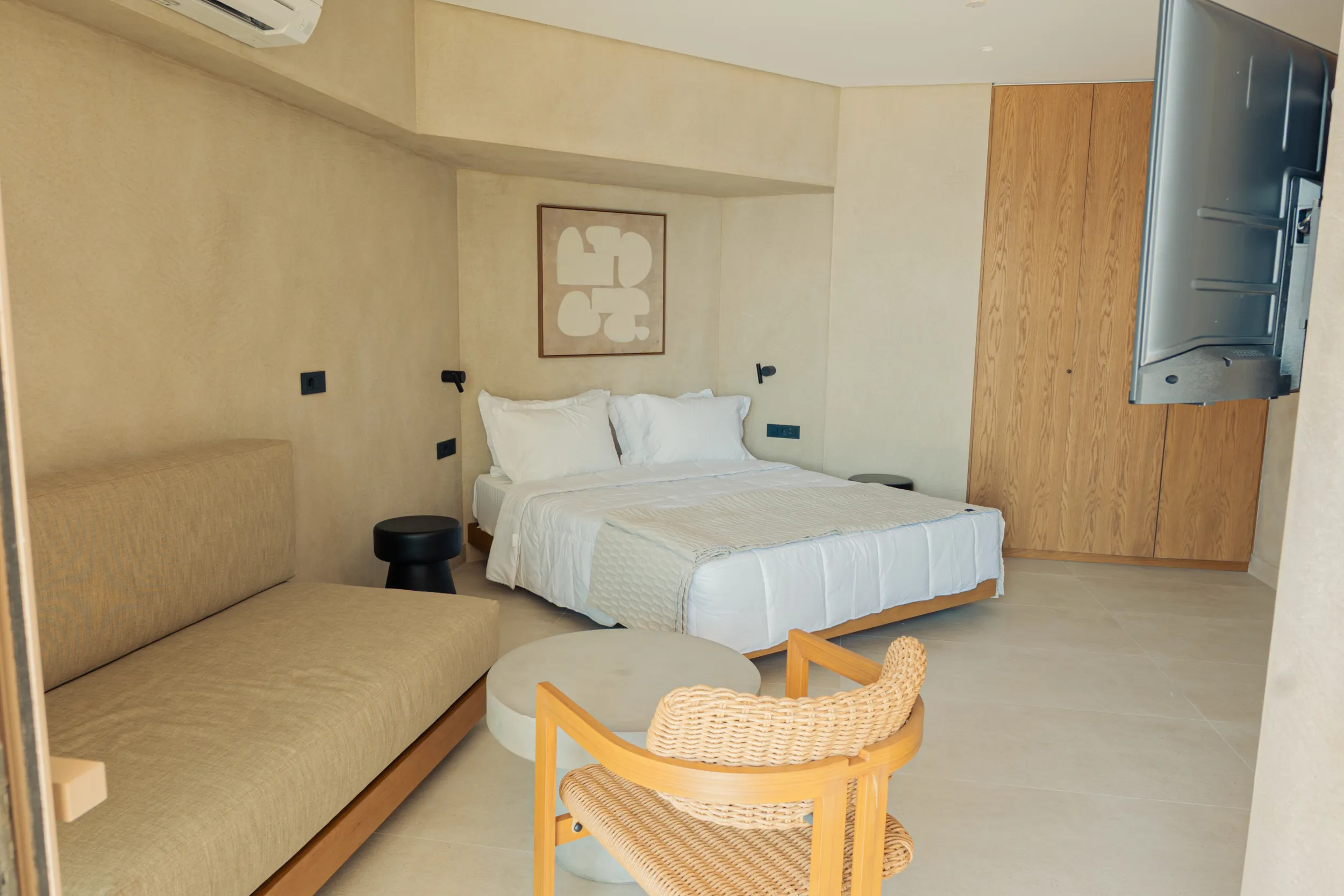 H σουίτα φιλοξενεί άνετα έως 4 επισκέπτες και διαθέτει 2 διπλά κρεβάτια, πλήρως εξοπλισμένο μπάνιο με ντους, άνετο χώρο καθιστικού και αυλή με όμορφη θέα στη θάλασσα και στον καταπράσινο κήπο.