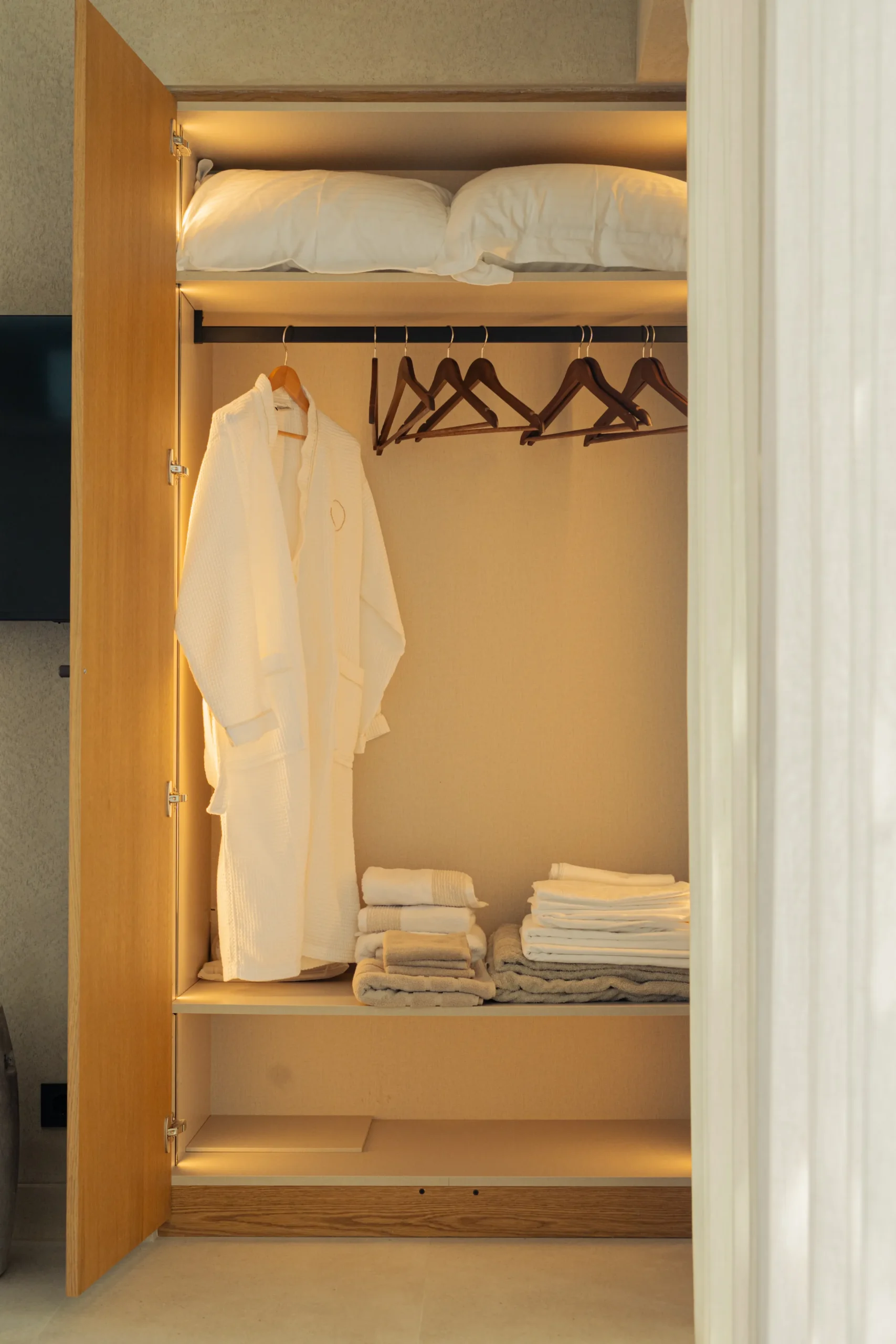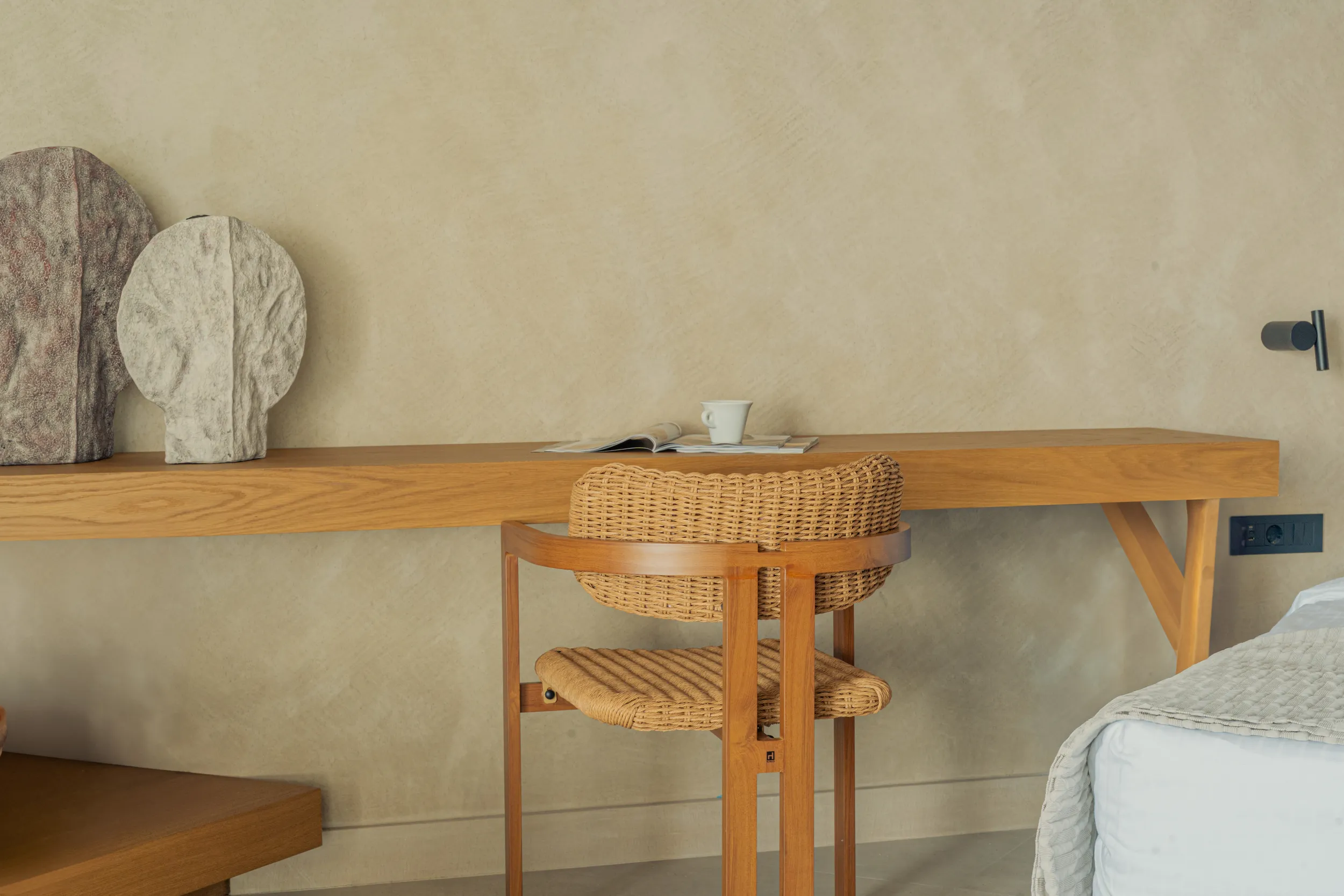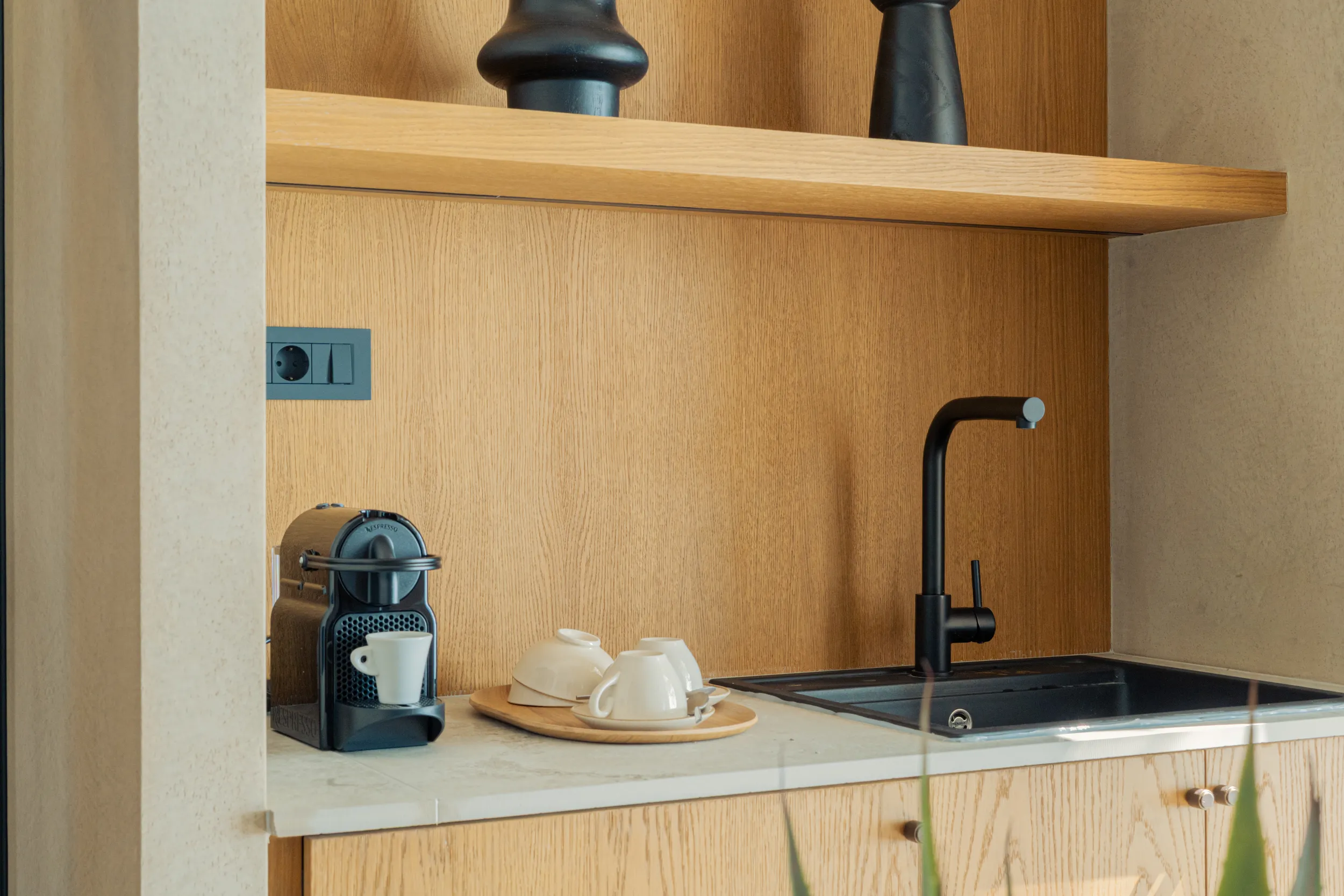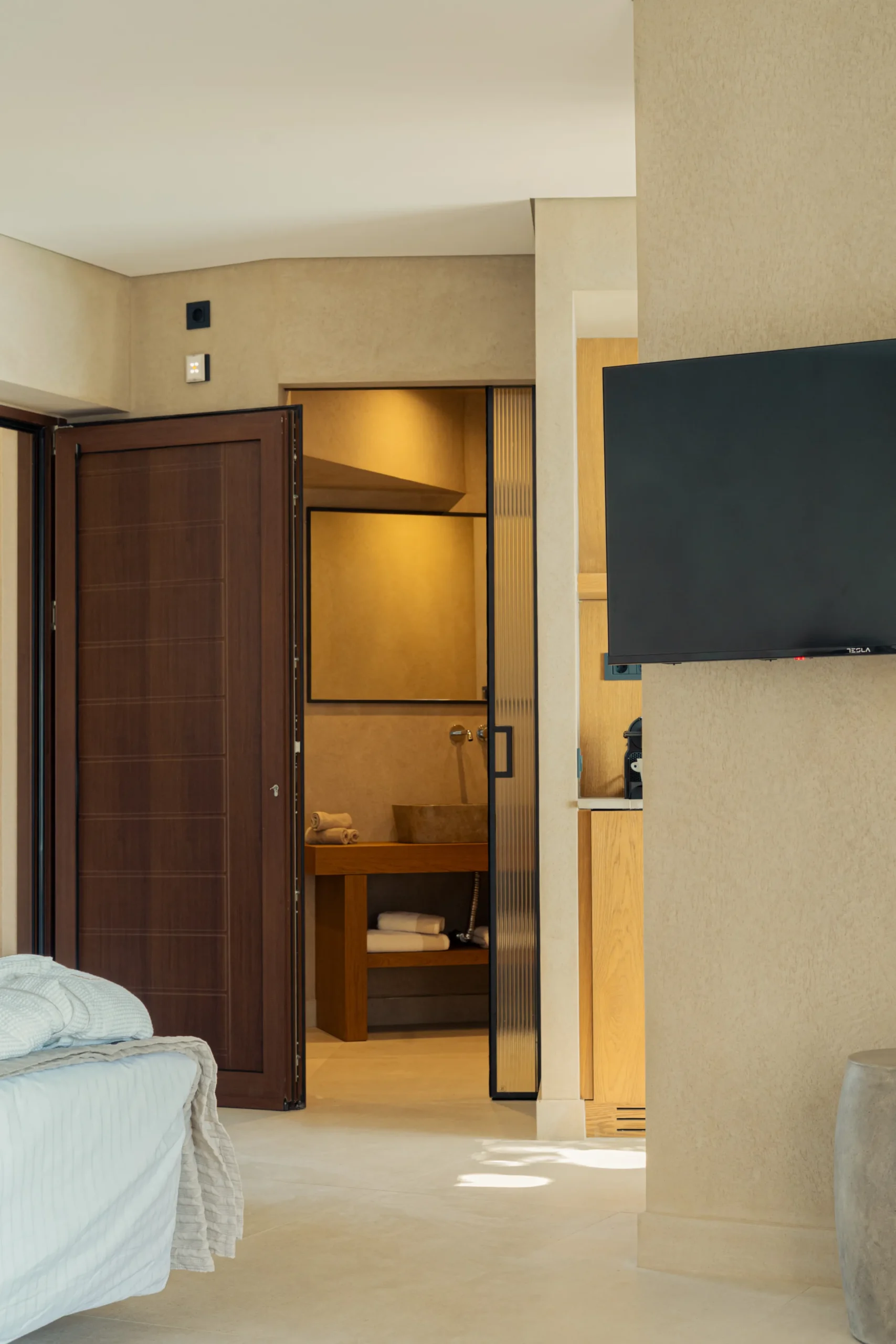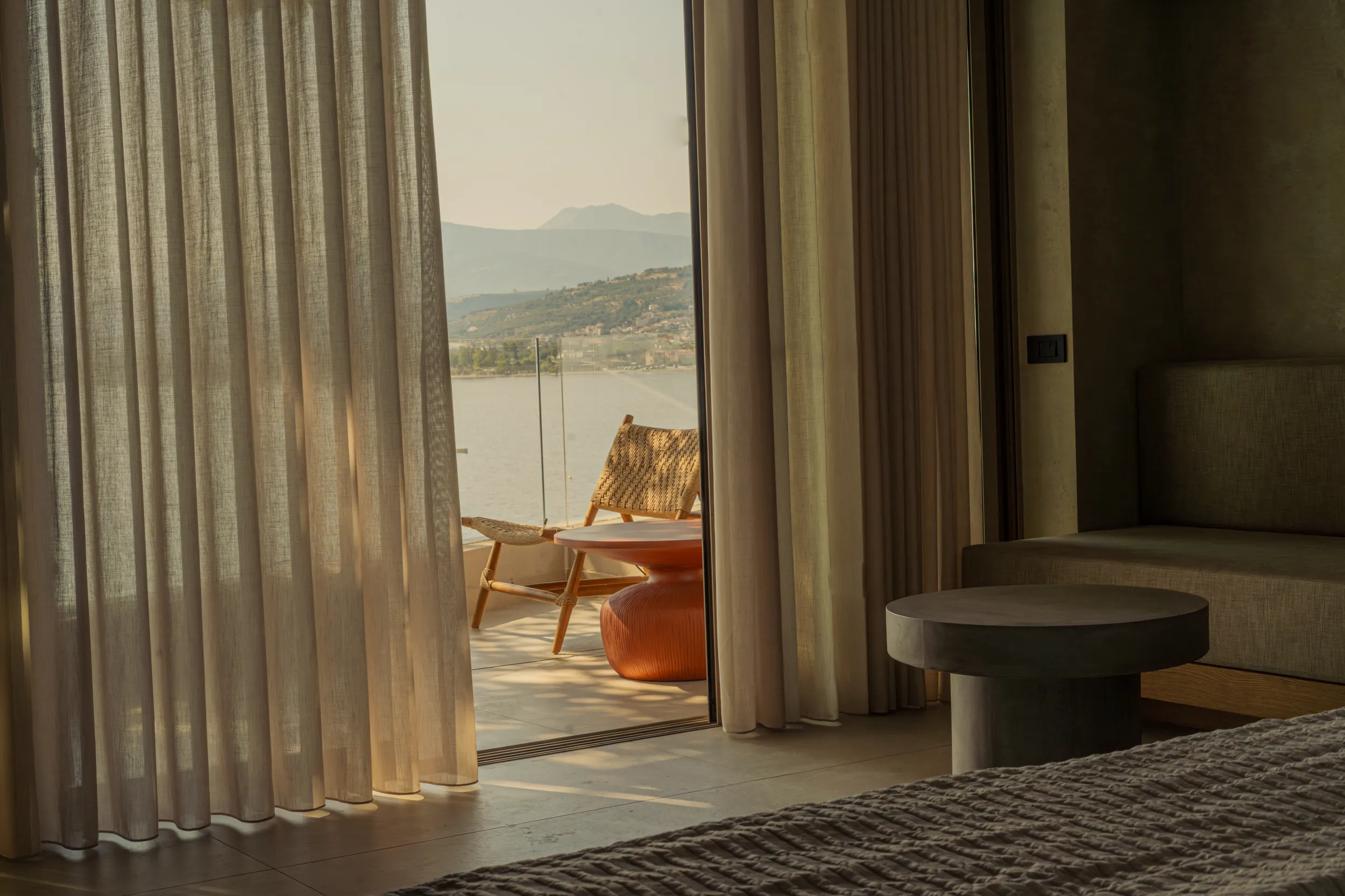 Κάθε σουίτα φιλοξενεί άνετα έως 2 επισκέπτες και διαθέτει διπλό κρεβάτι, πλήρως εξοπλισμένο μπάνιο με ντους, άνετο χώρο καθιστικού και ιδιωτικό μπαλκόνι ή αυλή με όμορφη θέα είτε στη θάλασσα είτε στον καταπράσινο κήπο.