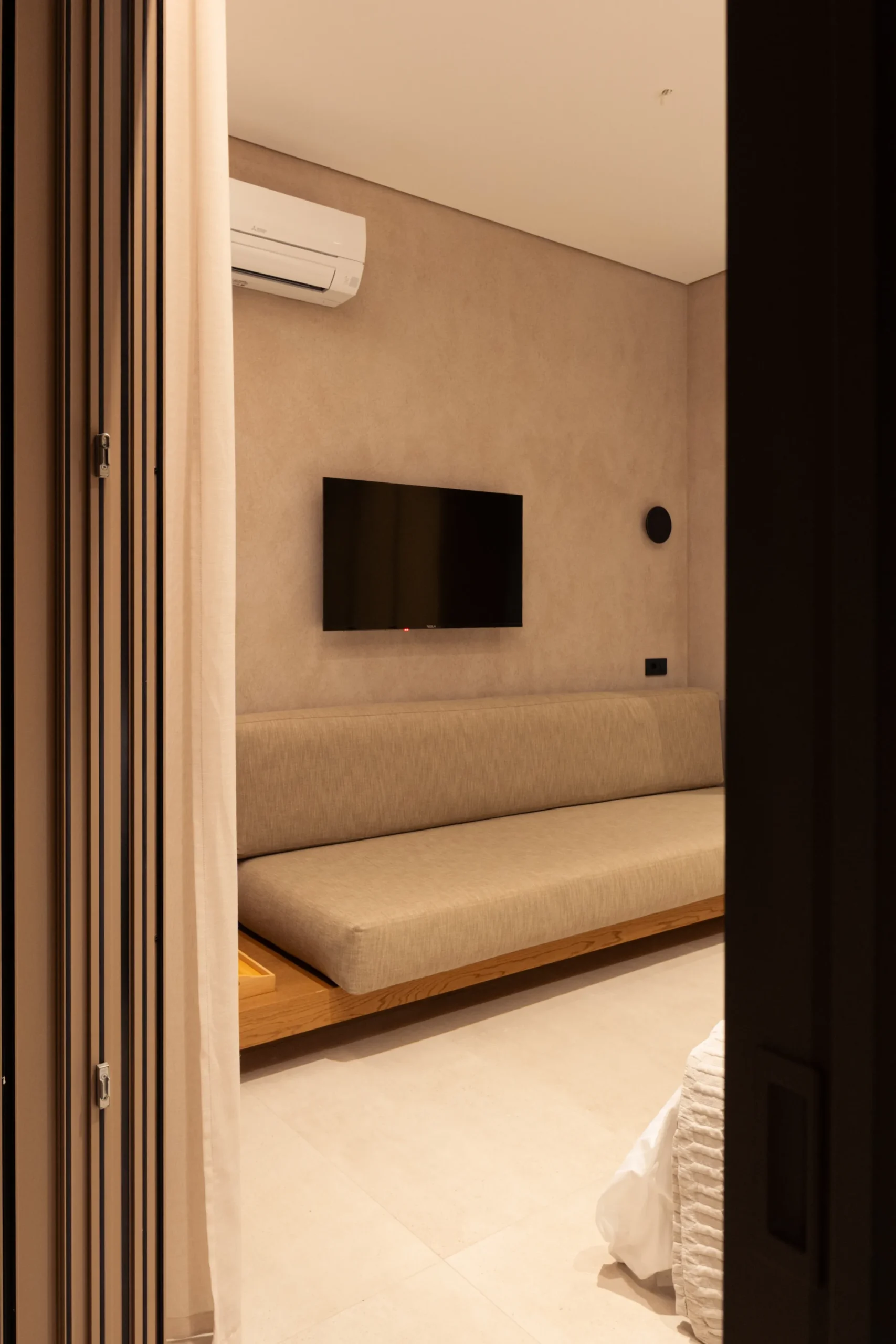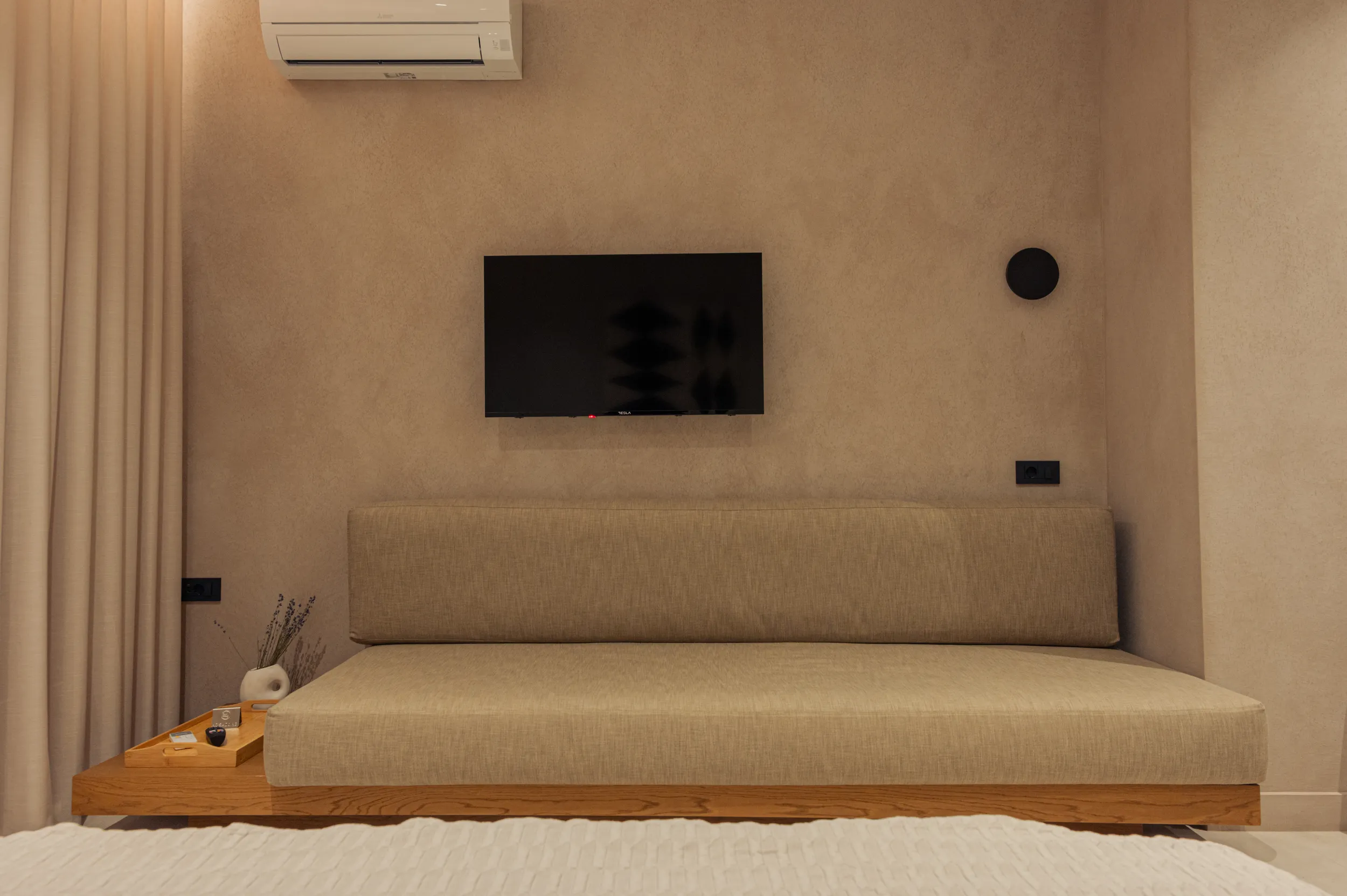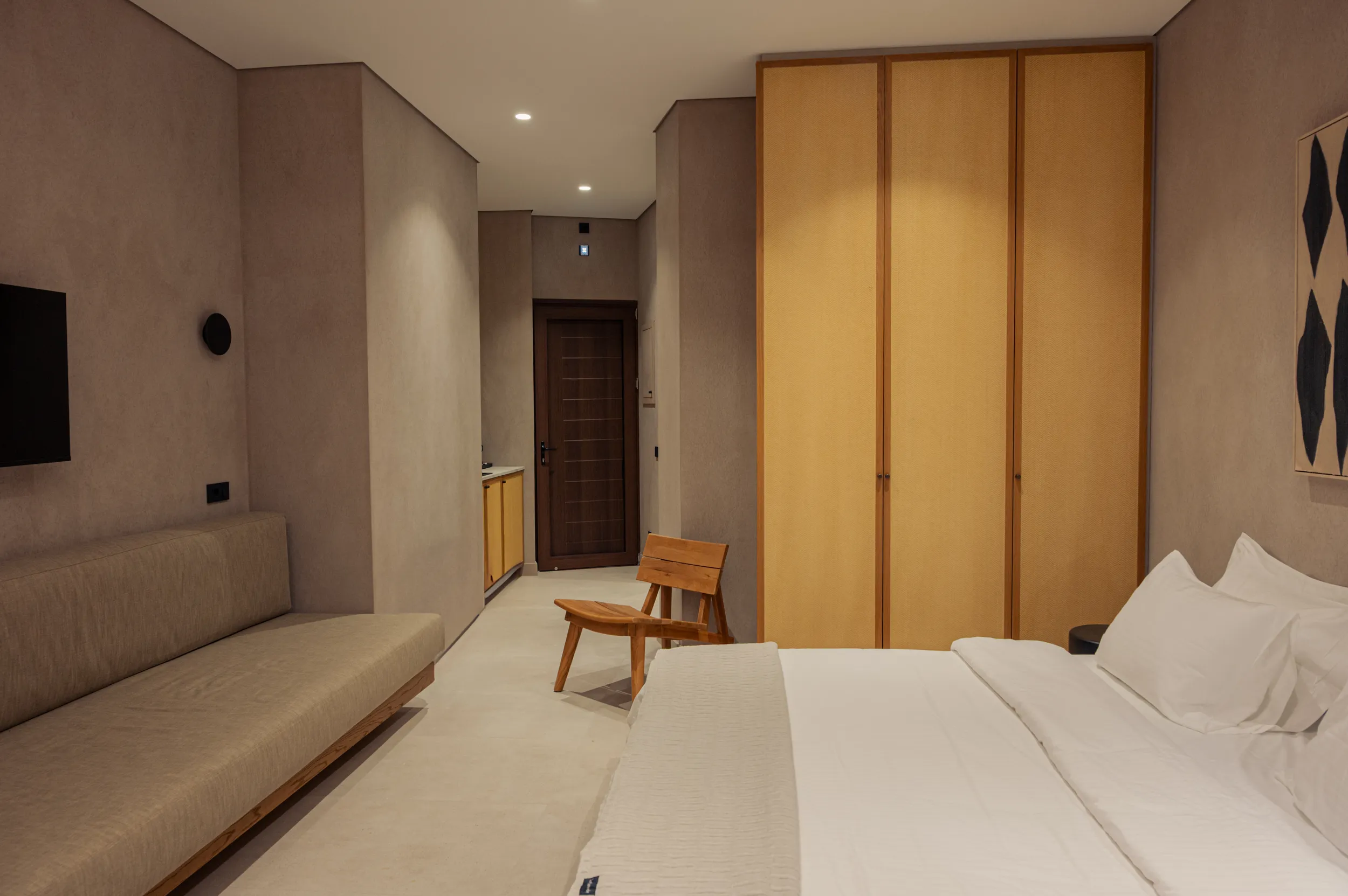 Κάθε σουίτα φιλοξενεί άνετα έως 2 επισκέπτες και διαθέτει διπλό κρεβάτι, πλήρως εξοπλισμένο μπάνιο με ντους, άνετο χώρο καθιστικού και ιδιωτικό μπαλκόνι ή αυλή με όμορφη θέα είτε στη θάλασσα είτε στον καταπράσινο κήπο.