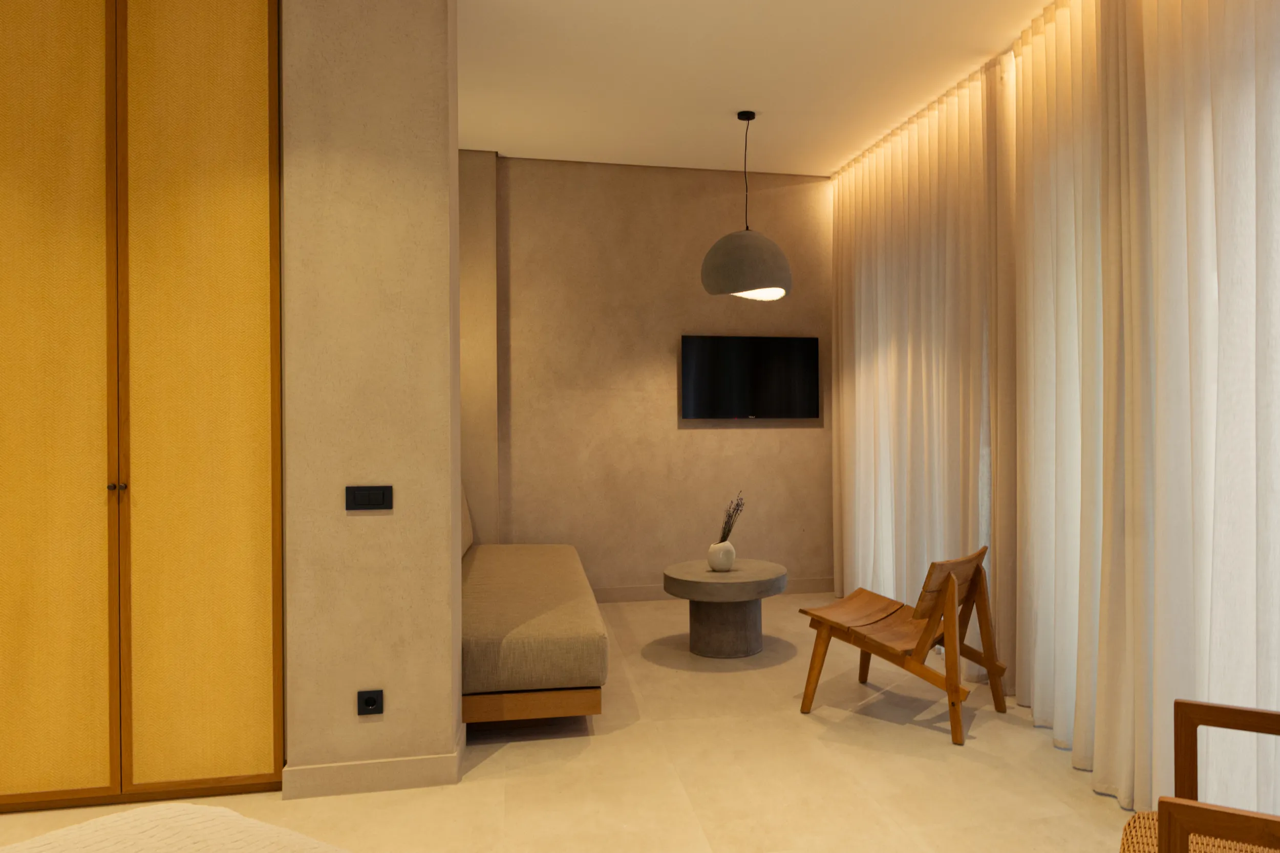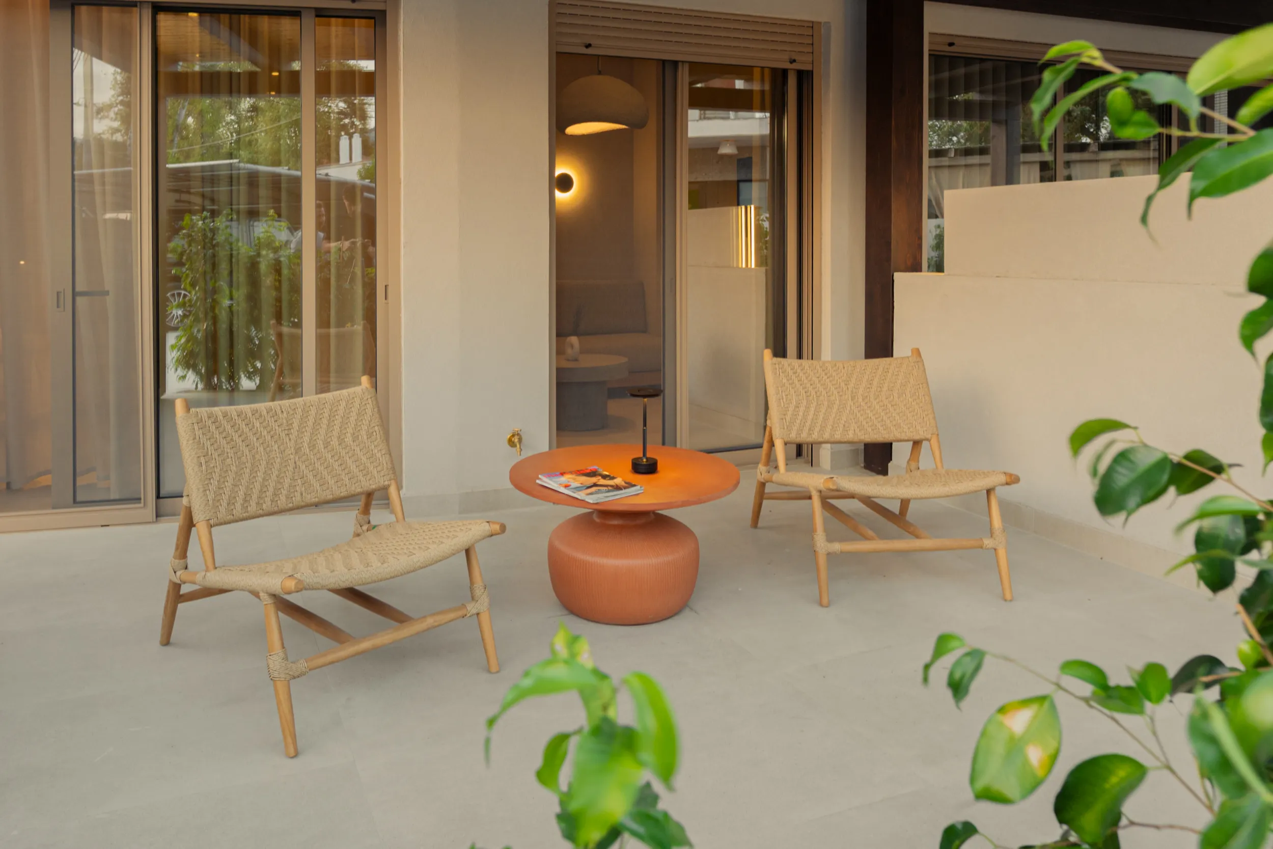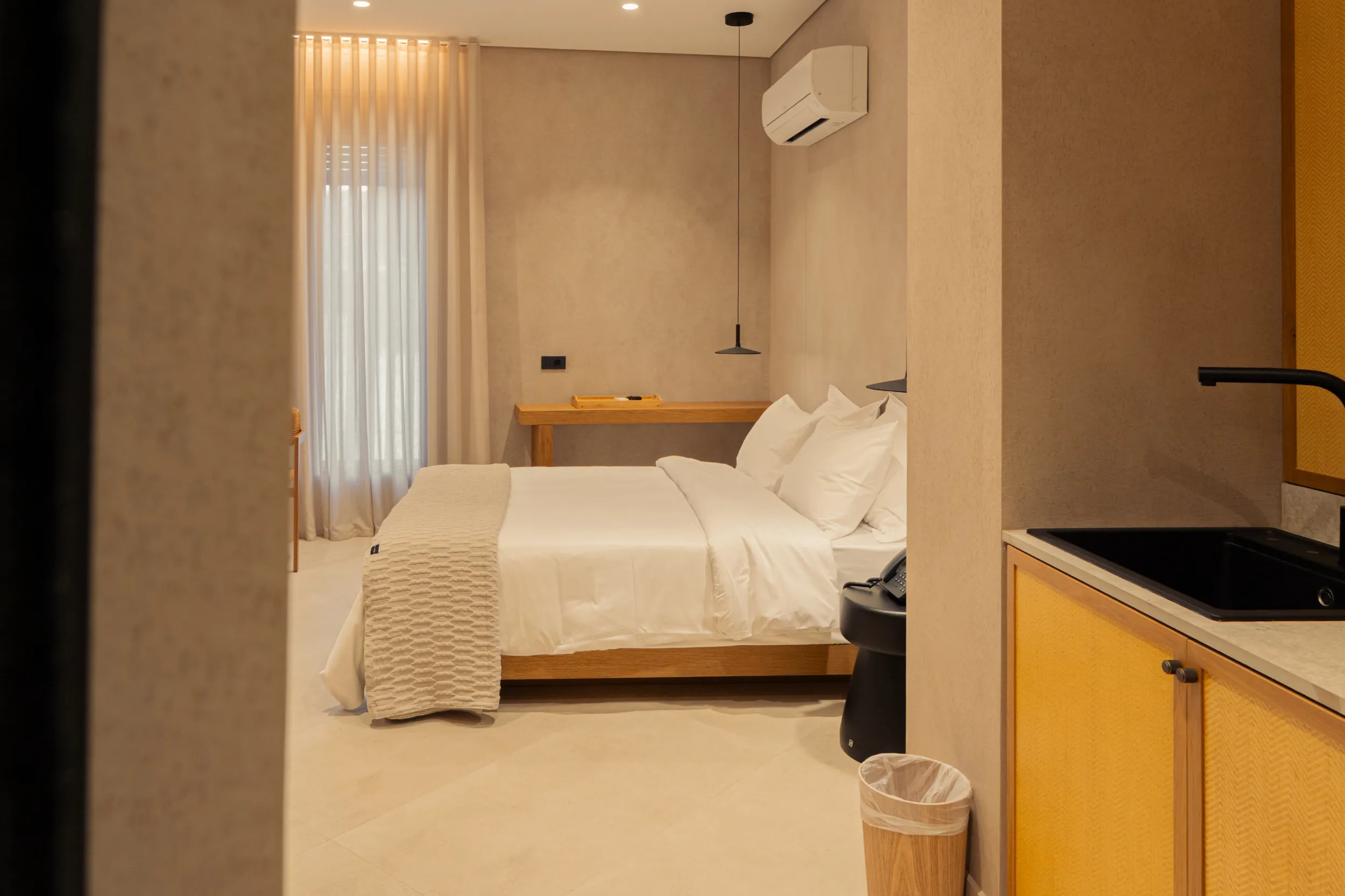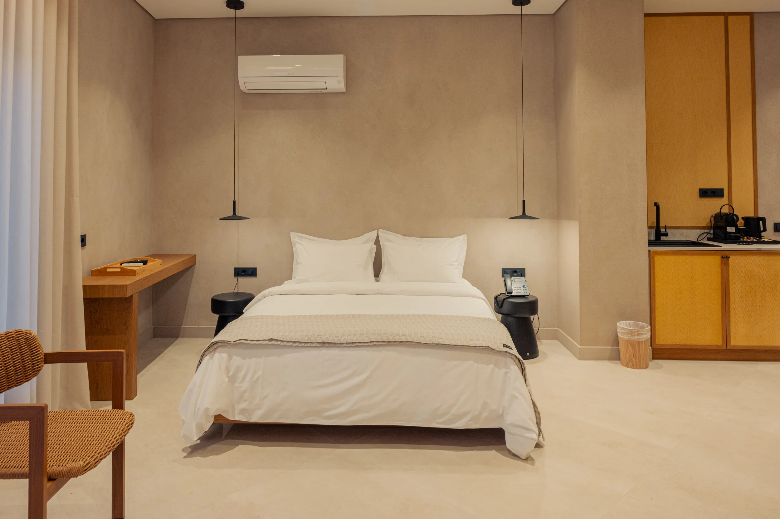 Κάθε σουίτα φιλοξενεί άνετα έως 2 επισκέπτες και διαθέτει διπλό κρεβάτι, πλήρως εξοπλισμένο μπάνιο με ντους, άνετο χώρο καθιστικού και ιδιωτικό μπαλκόνι ή αυλή με όμορφη θέα είτε στη θάλασσα είτε στον καταπράσινο κήπο.